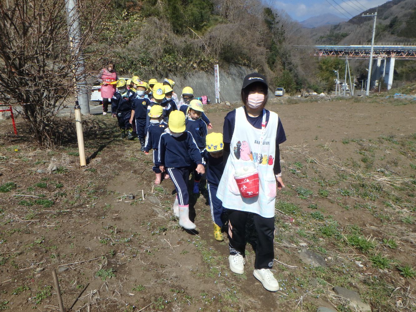 大月保育園の年中さん16名が園長先生と先生2名と浅利にやってきました。