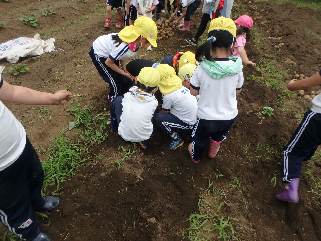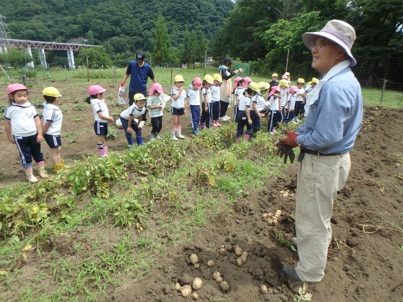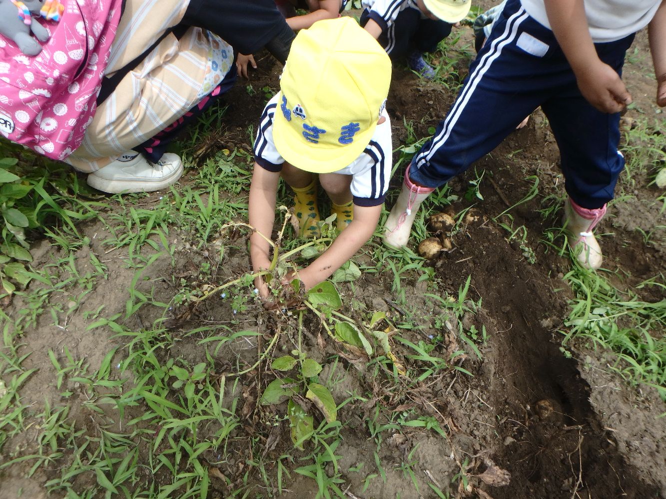 保育園園児がジャガイモの苗植えからジャガイモ掘りまで