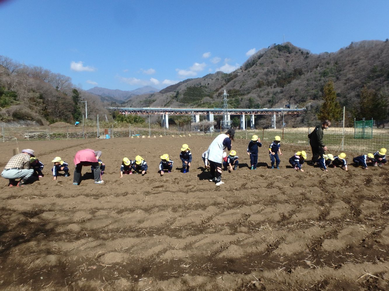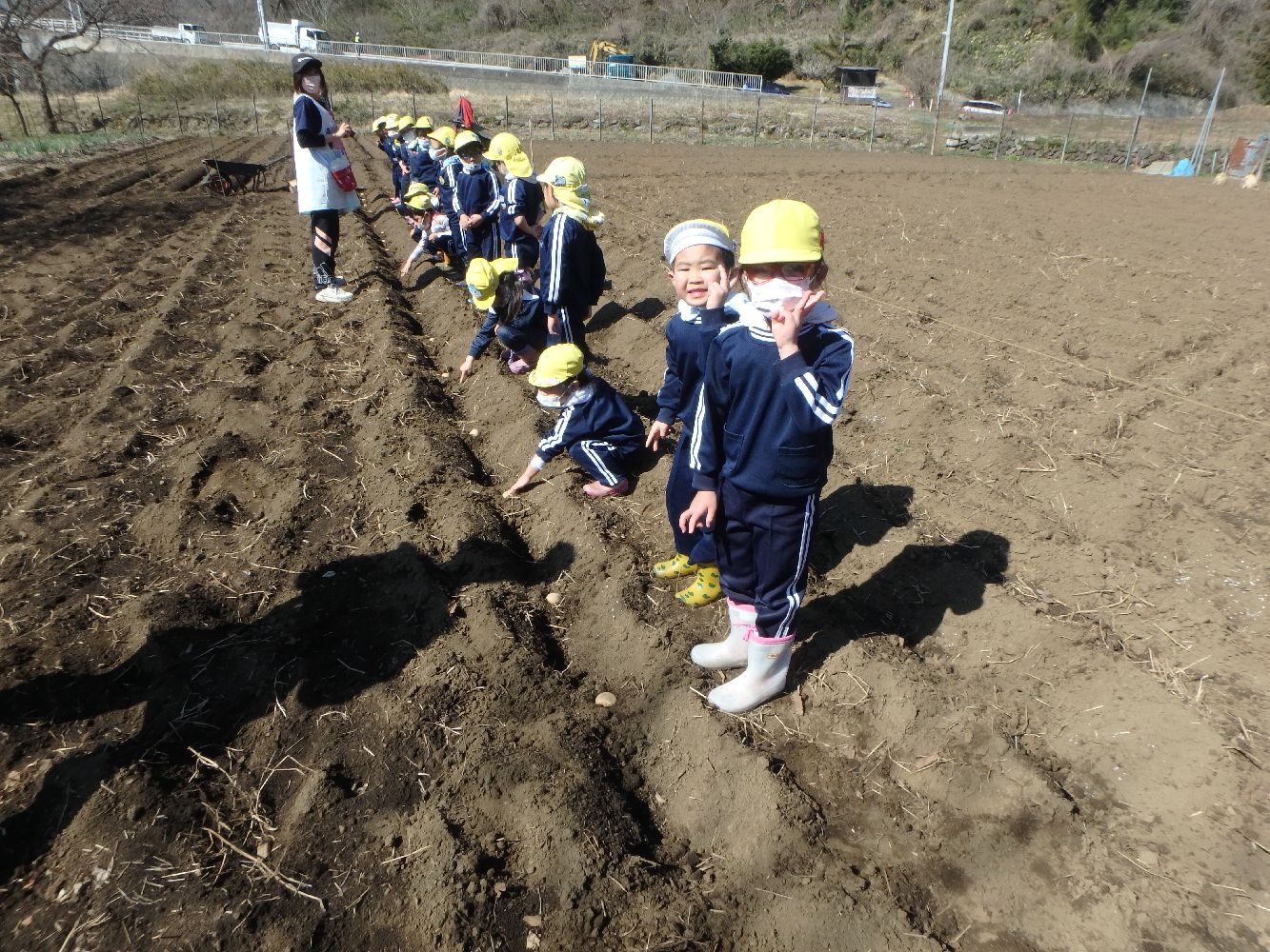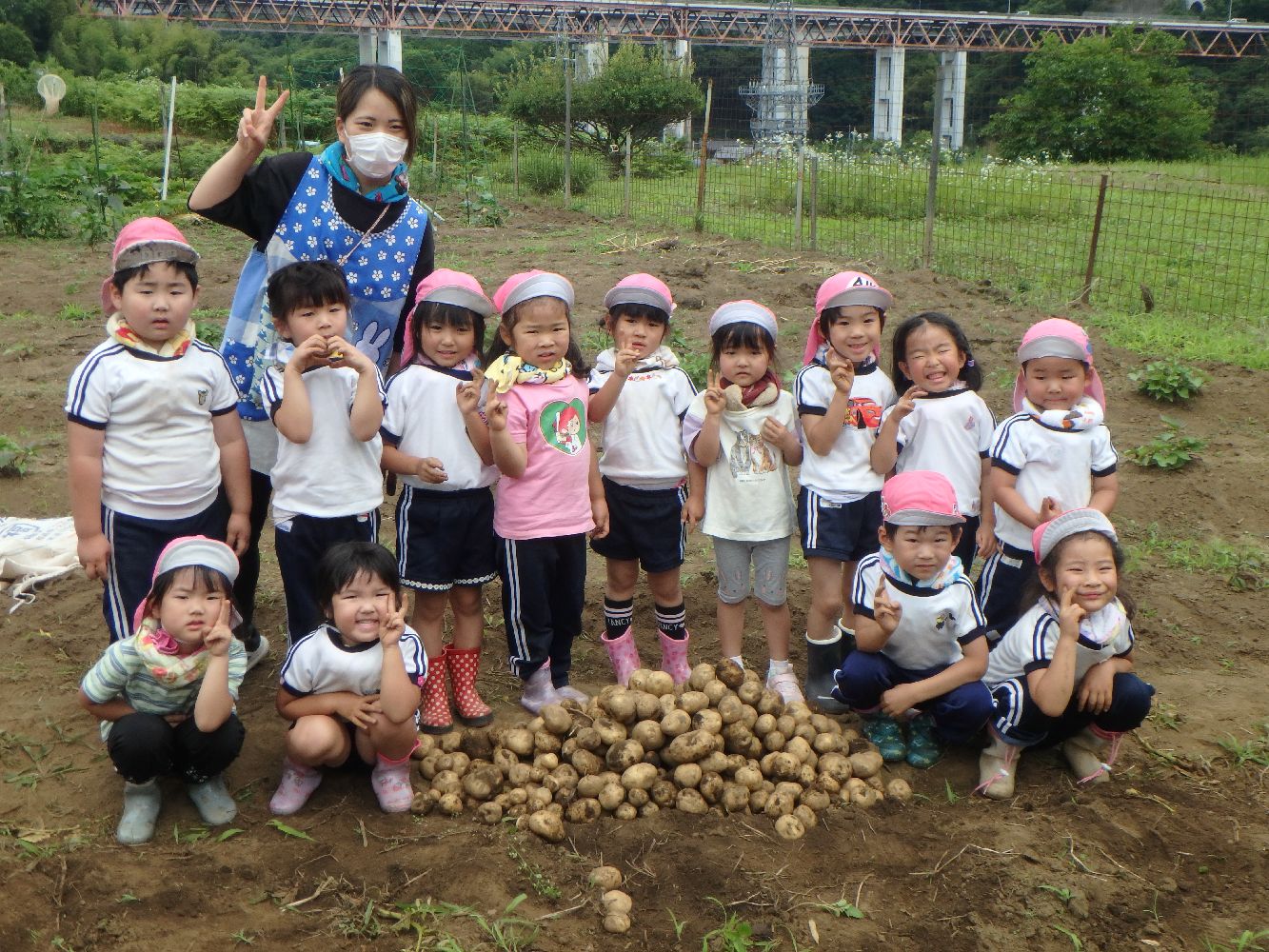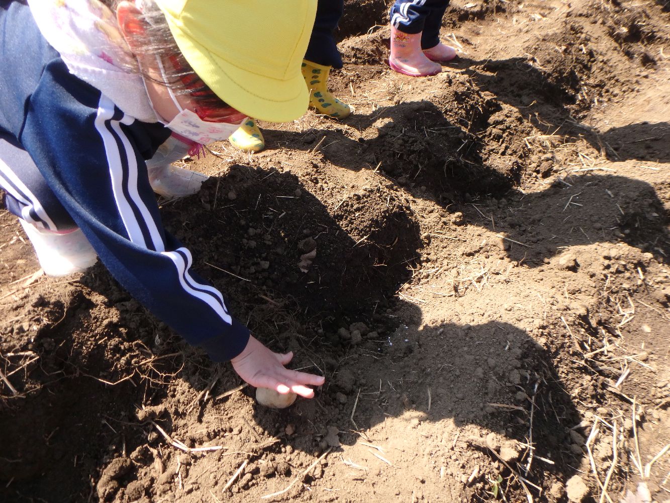 保育園園児がジャガイモの苗植えからジャガイモ掘りまで