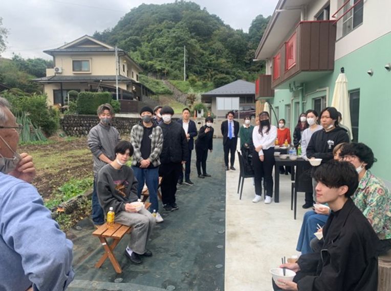 地元浅利の方々の挨拶に耳を傾ける学生及び先生や市議会議員の皆さん