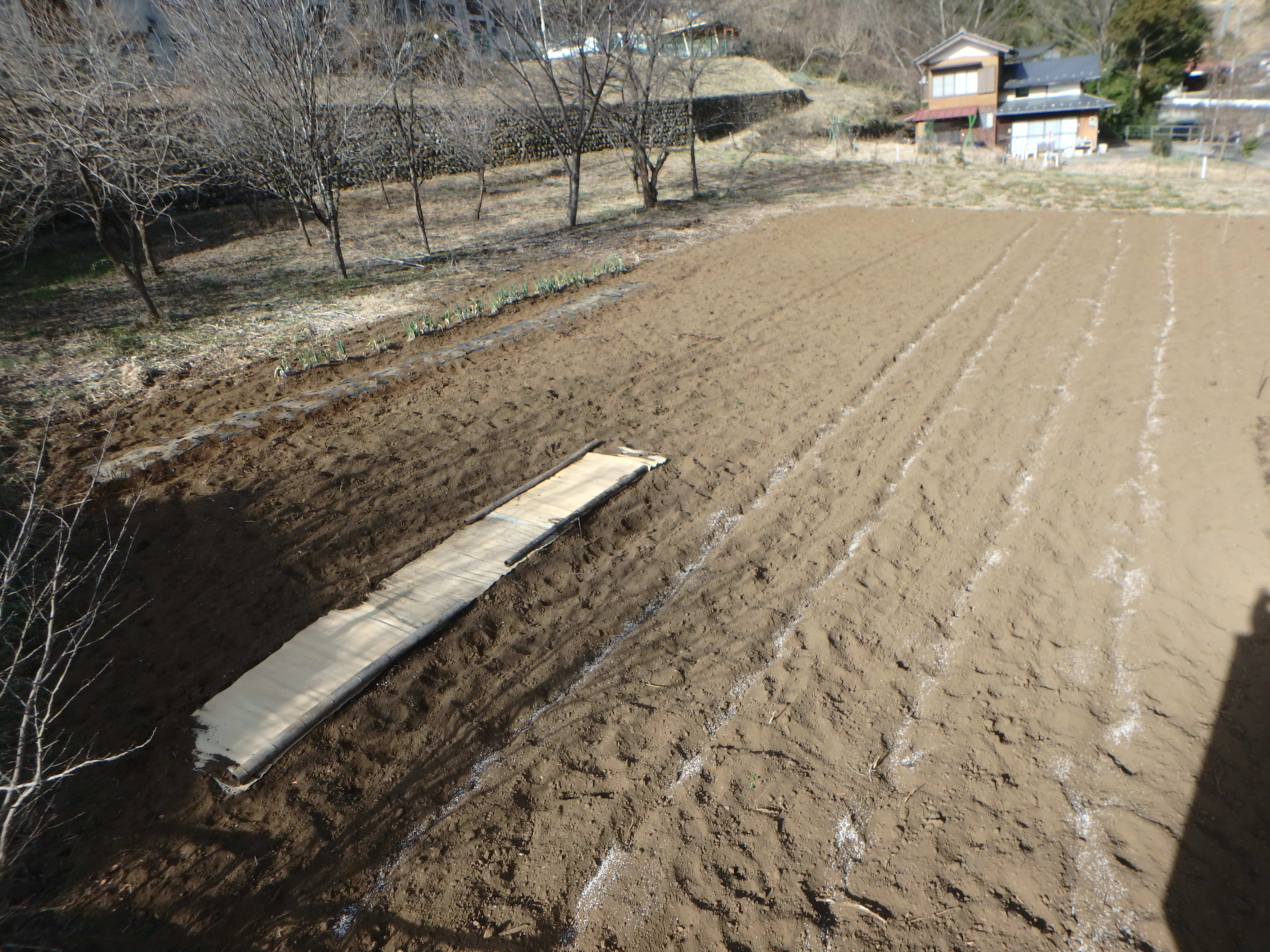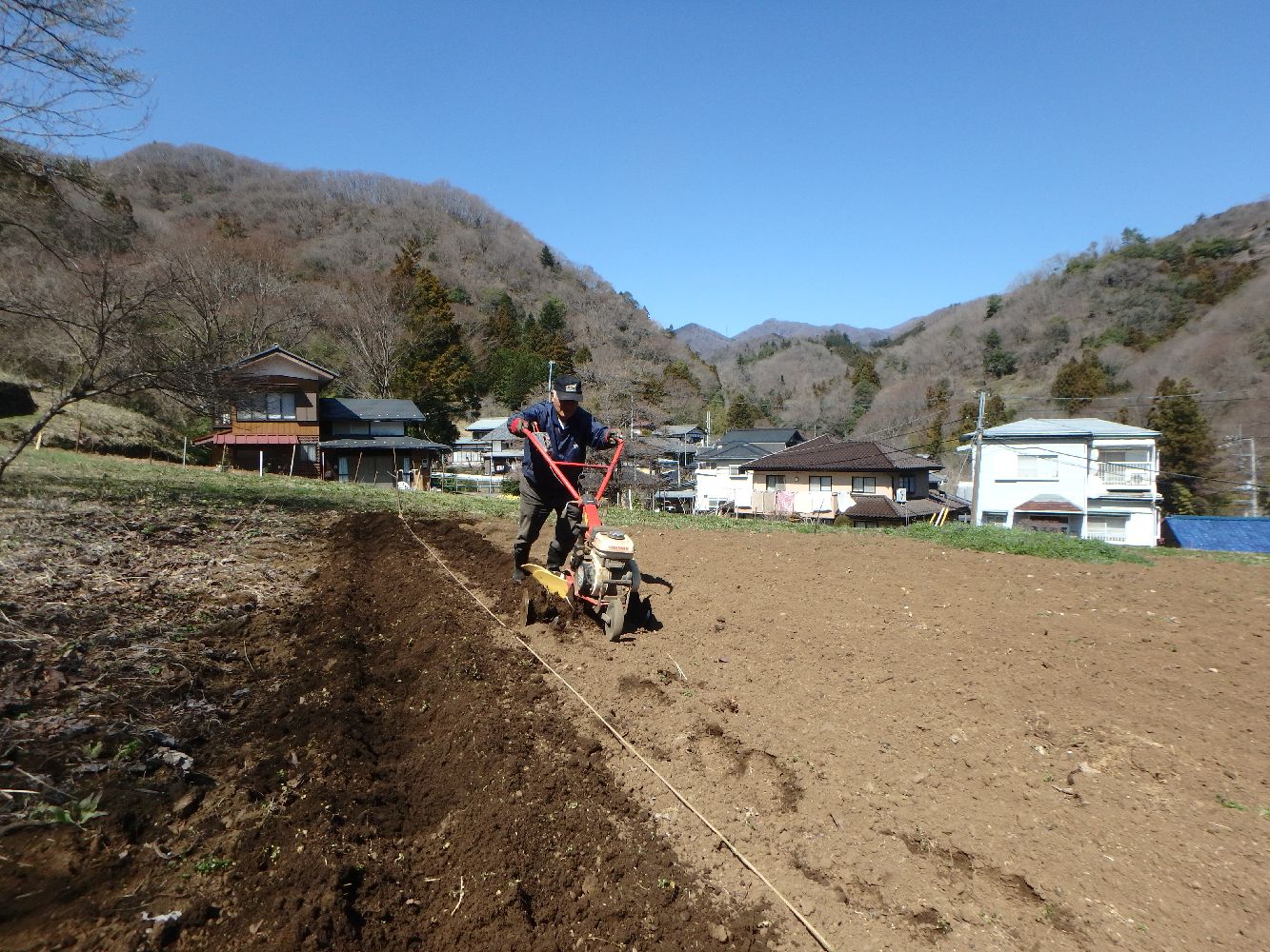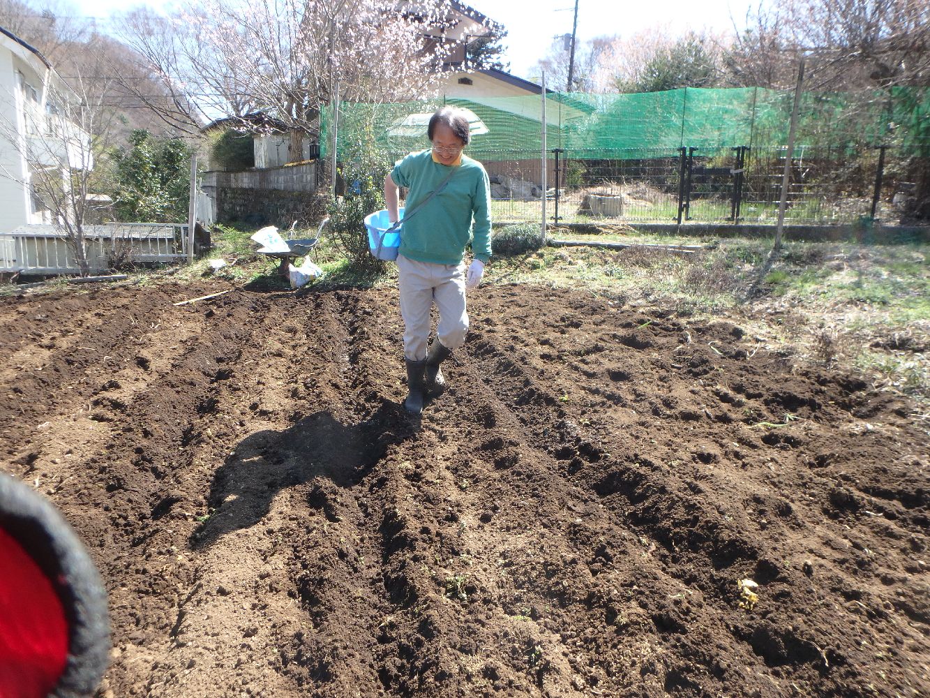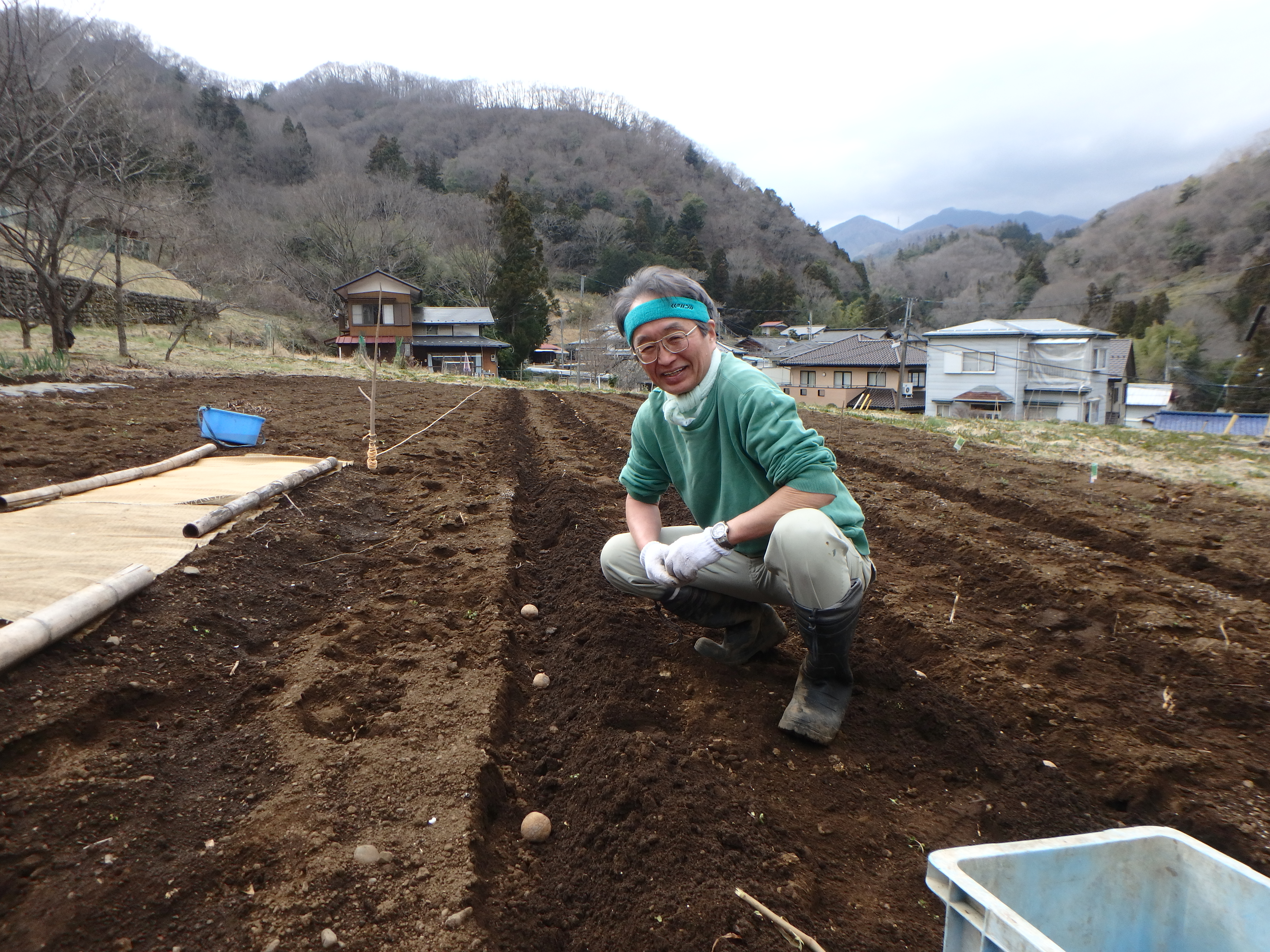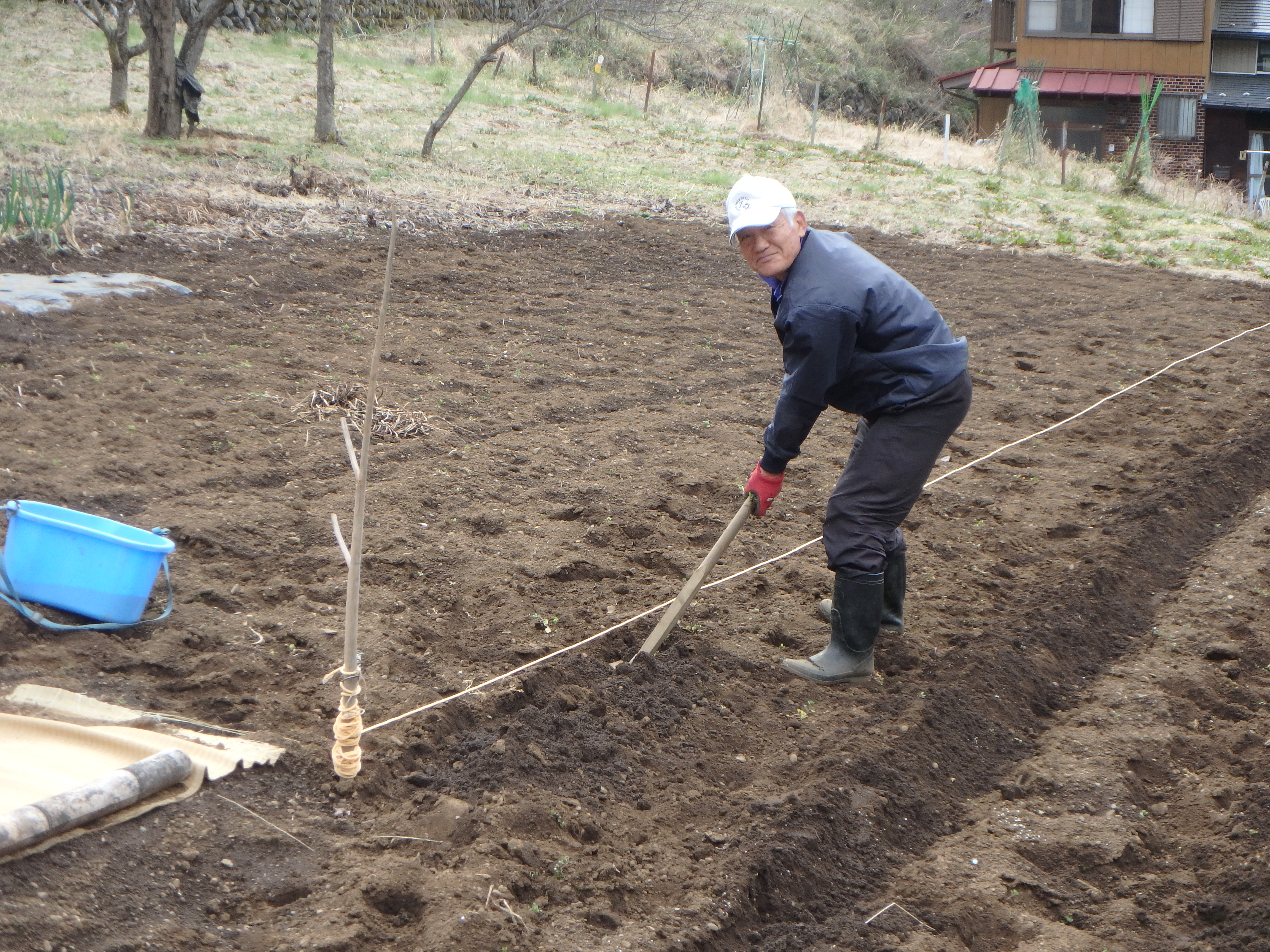 久々に晴れた3月20日、大津屋さん(屋号)にじゃがいも植えを教えていただきました。