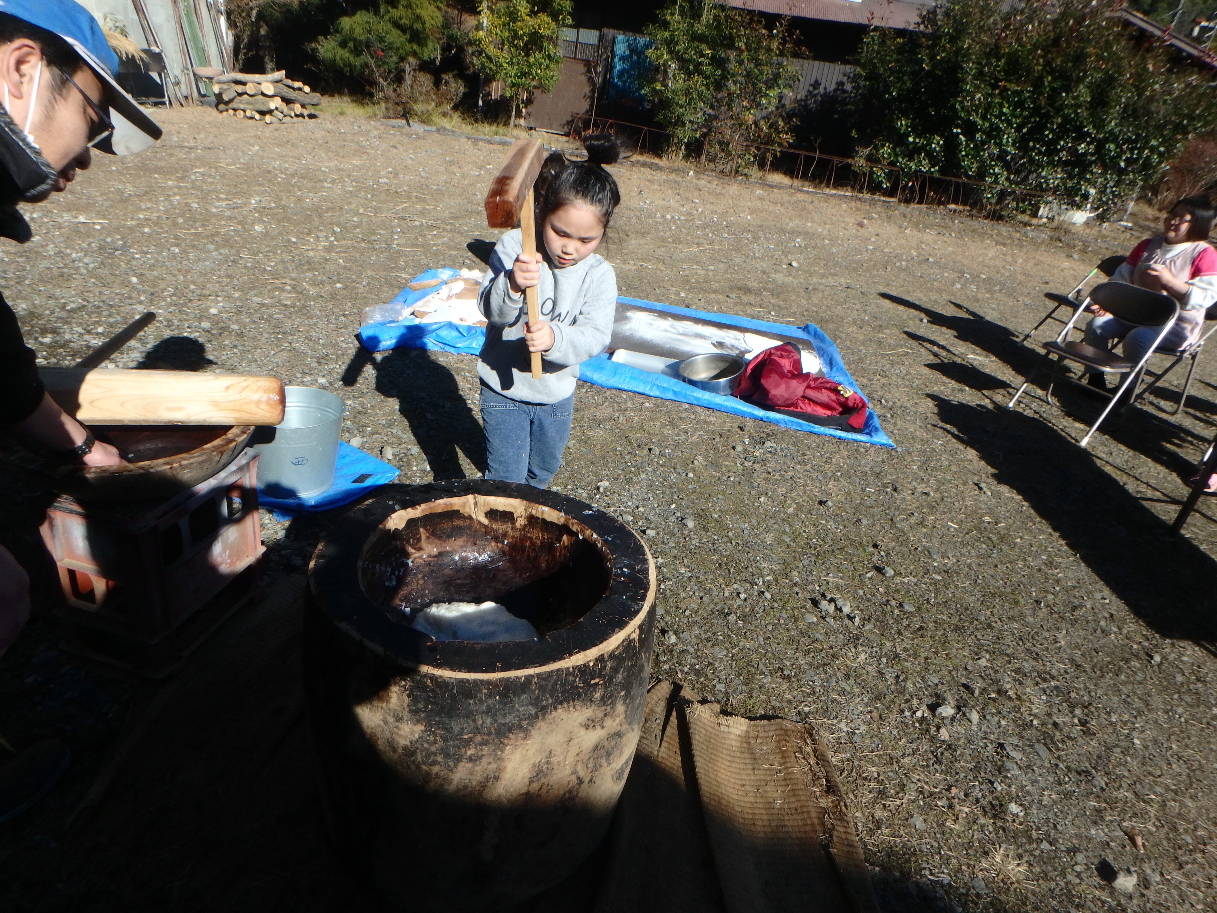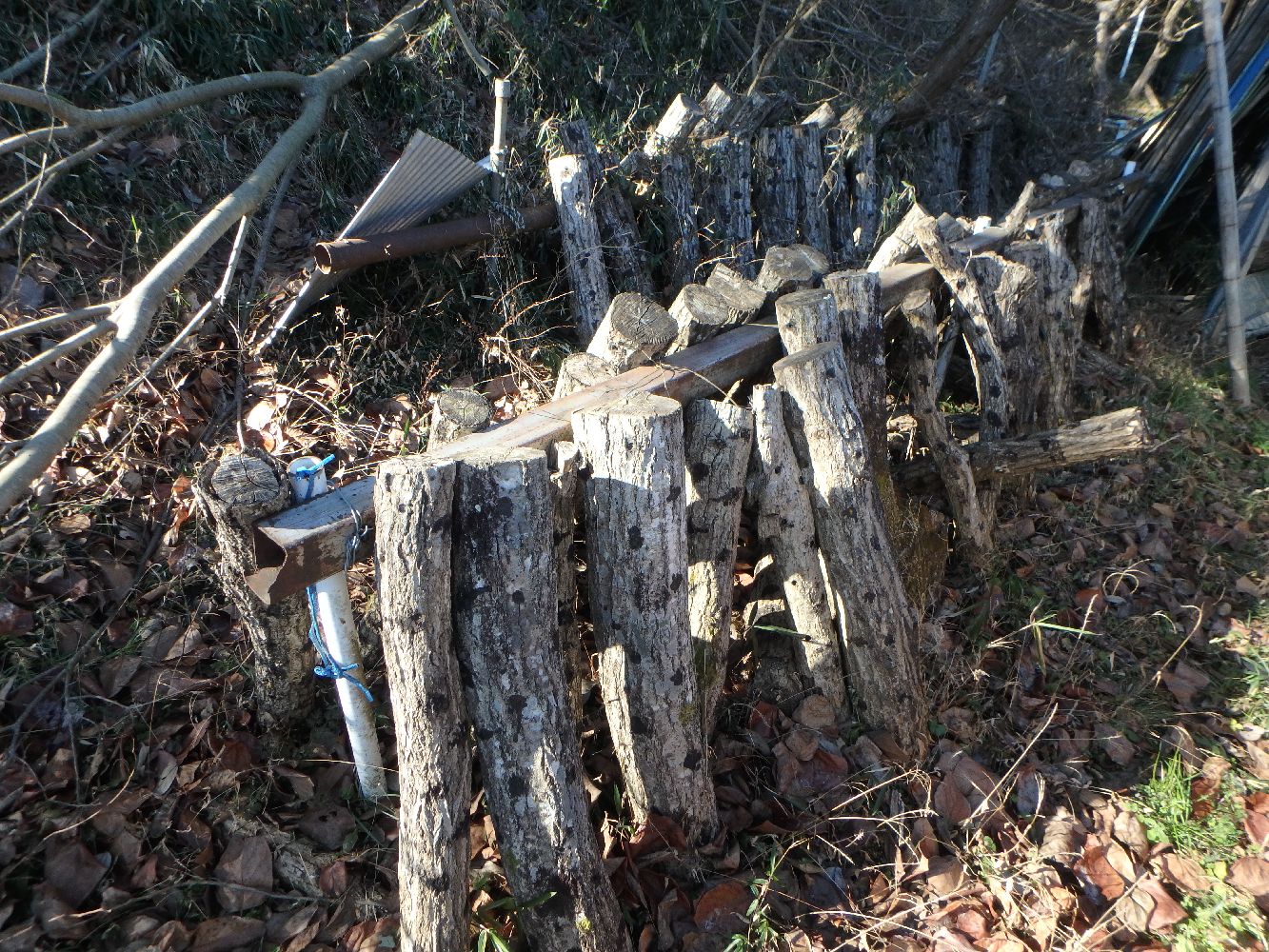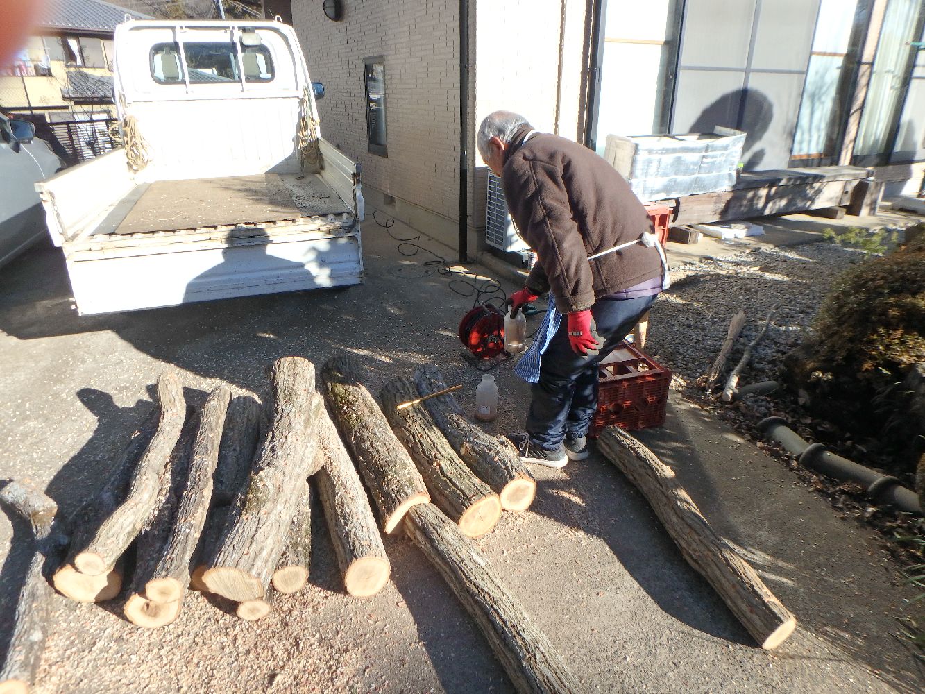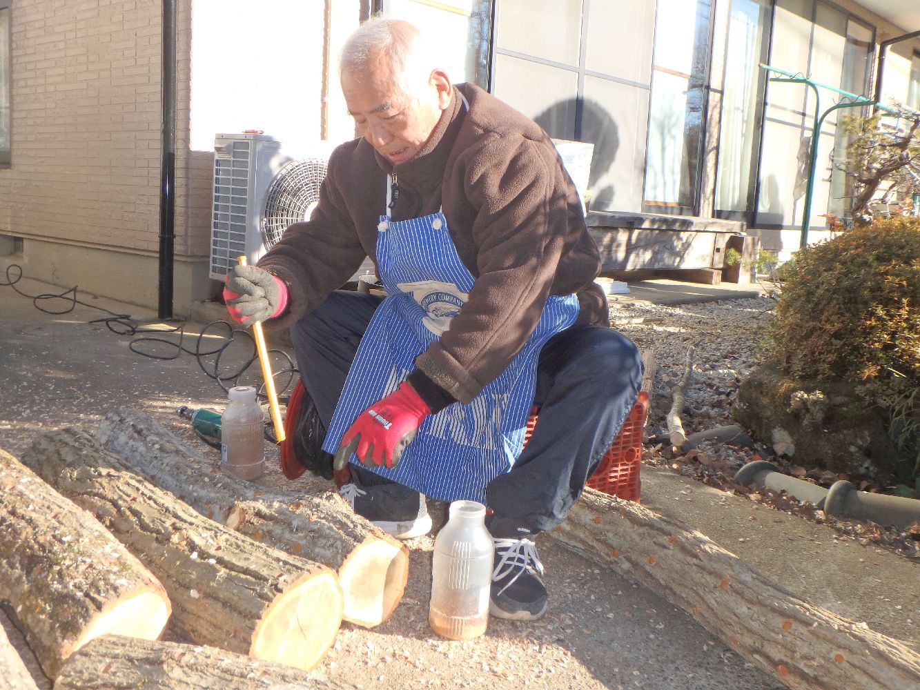 1月、大津屋さん(屋号)が原木にしいたけの植菌をしました。