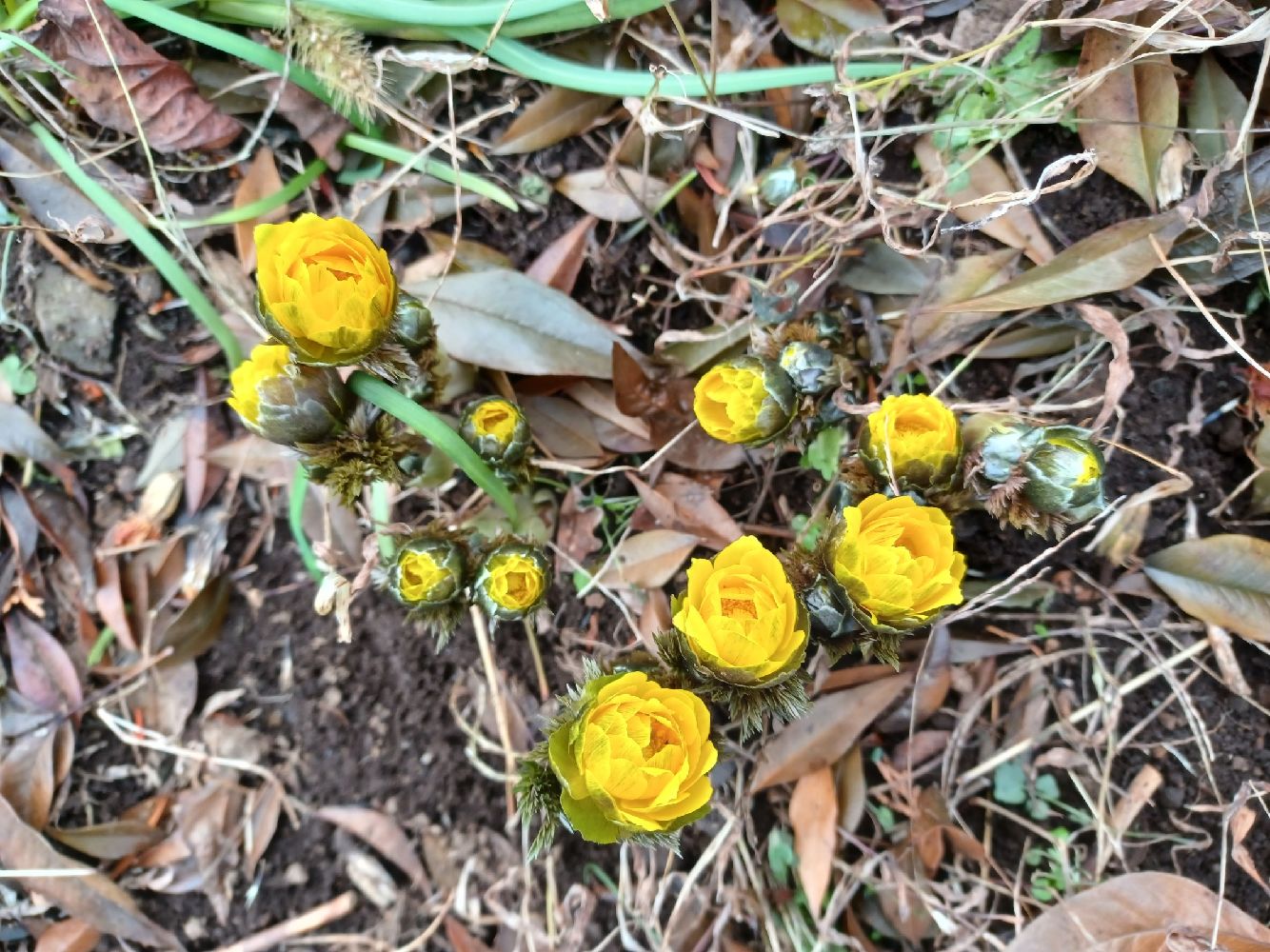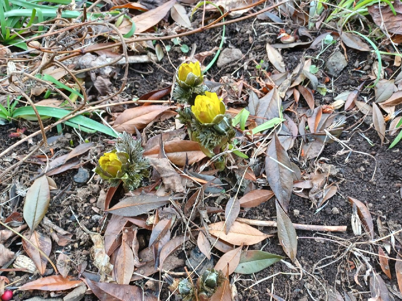 上平組の上野屋(屋号)さんの福寿草の花が咲き始めました。