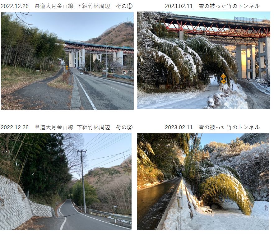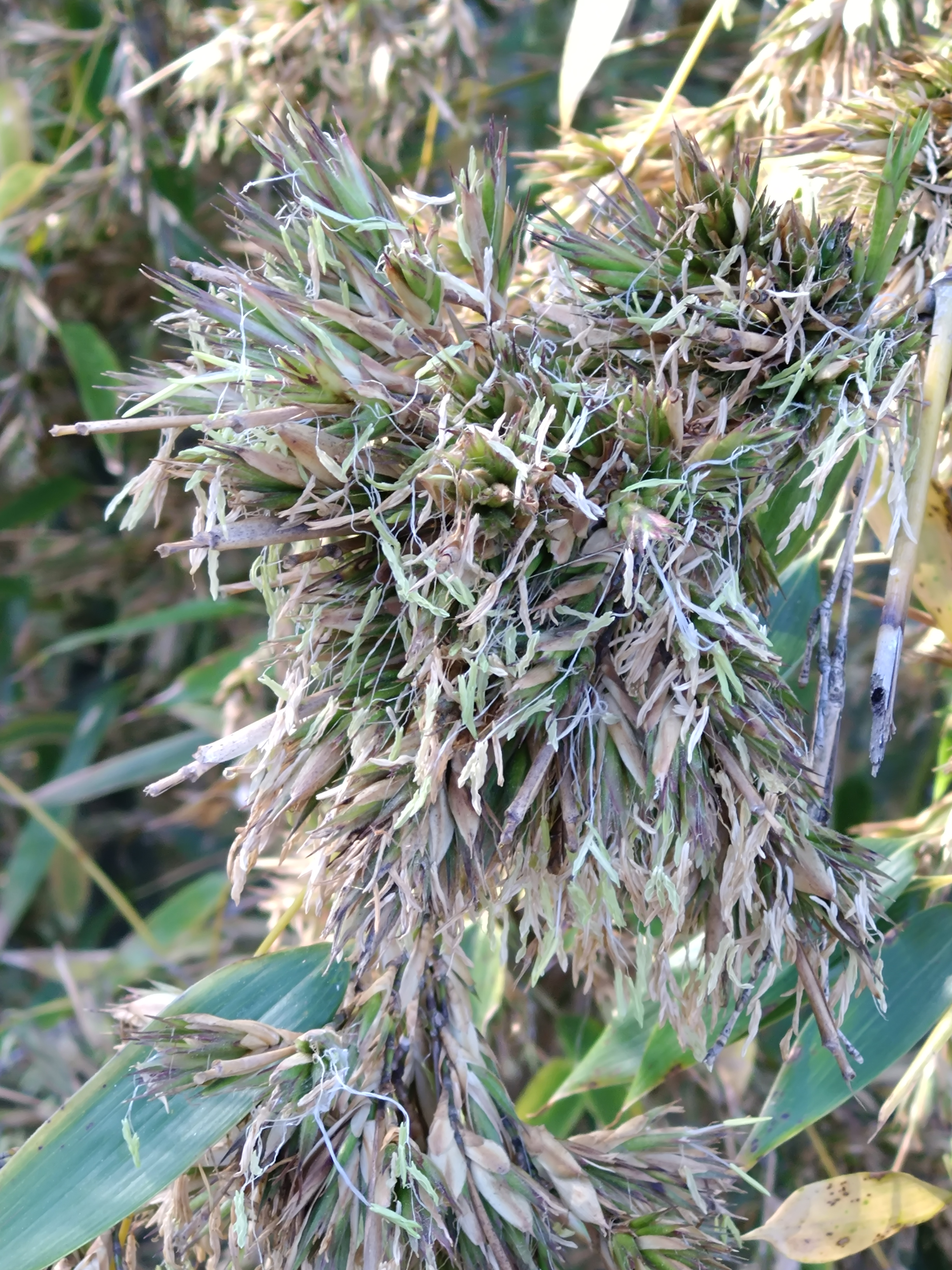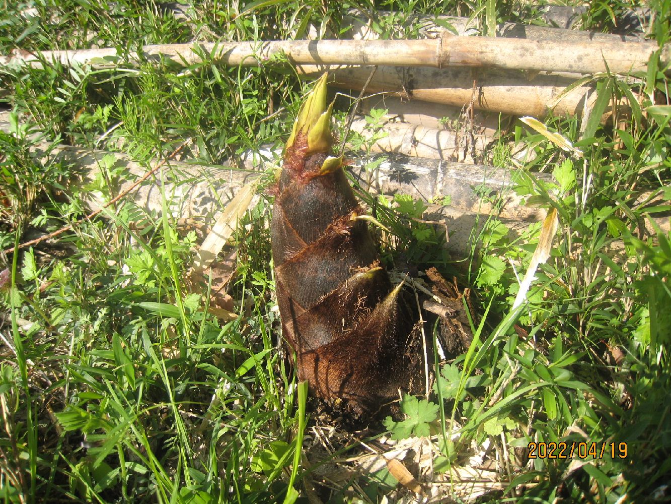 入組のサンコート大月の川側竹藪に竹の花が咲きました。