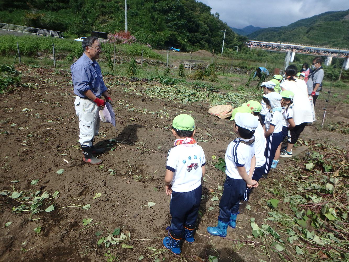 今日は、浅利の元中学校校長先生だった中村先生の畑でさつまいも掘りです。