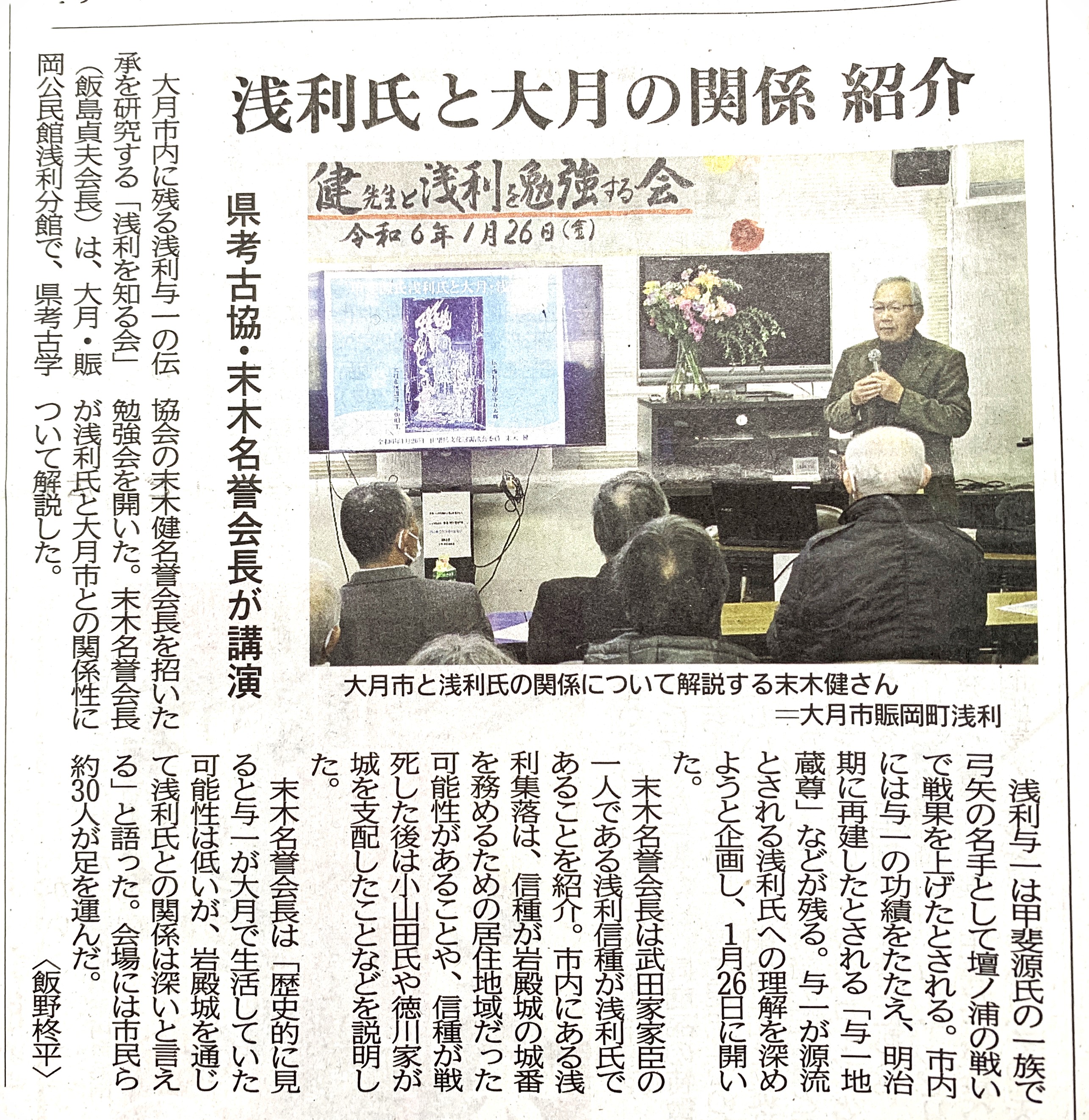 題目は「甲斐源氏浅利氏と大月・浅利集落」についてです。