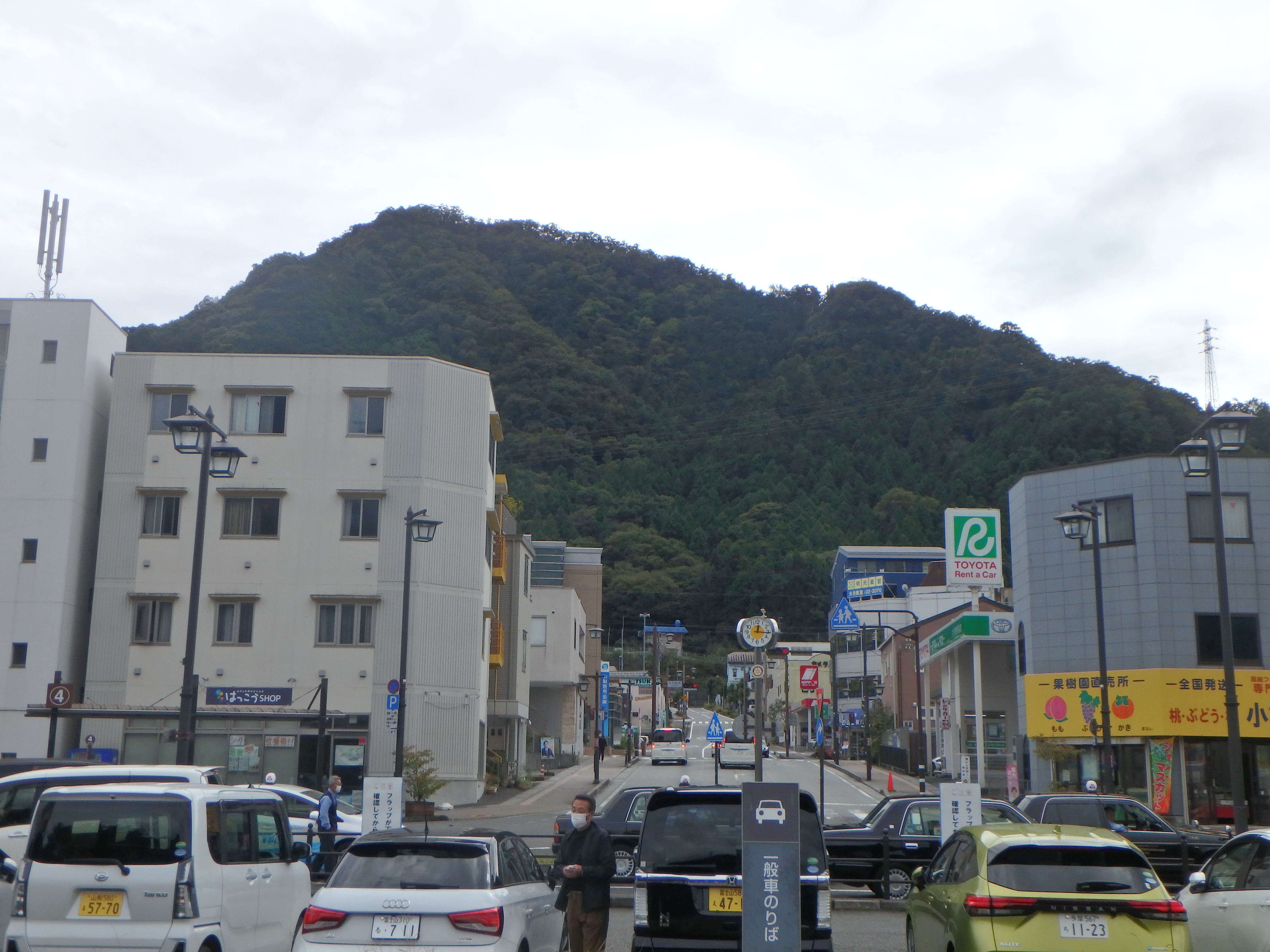 大月駅の改札を出ると、目の前に聳える(そびえる)のが菊花山です。