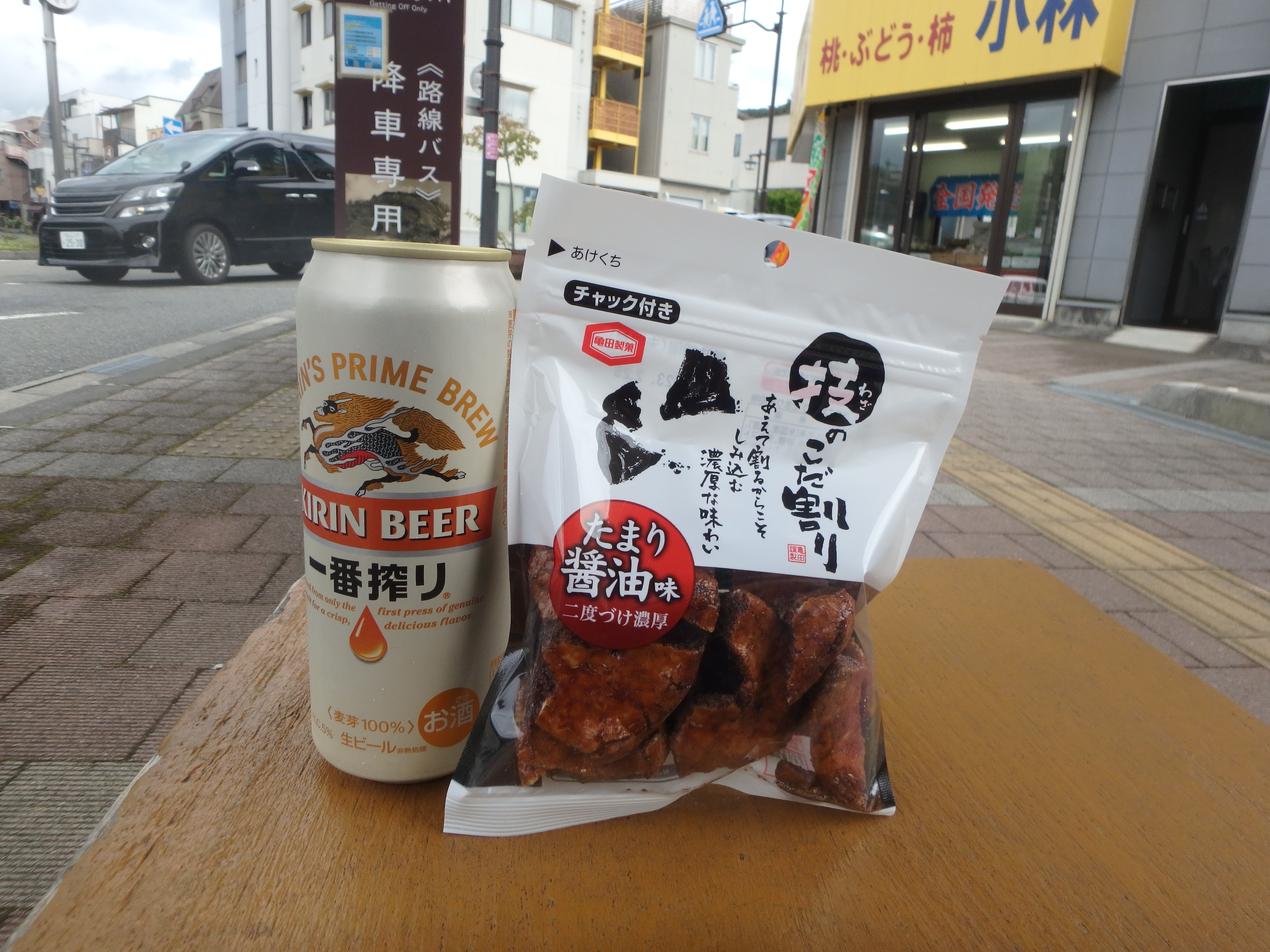 大月駅着、運動後の汗と冷や汗で喉が渇く。
