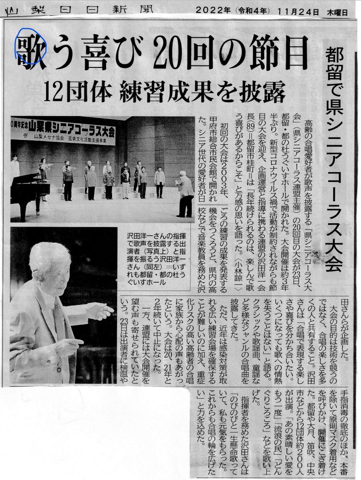 11月23日(水) 山梨県シニアコーラス大会