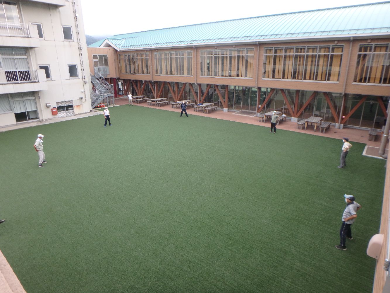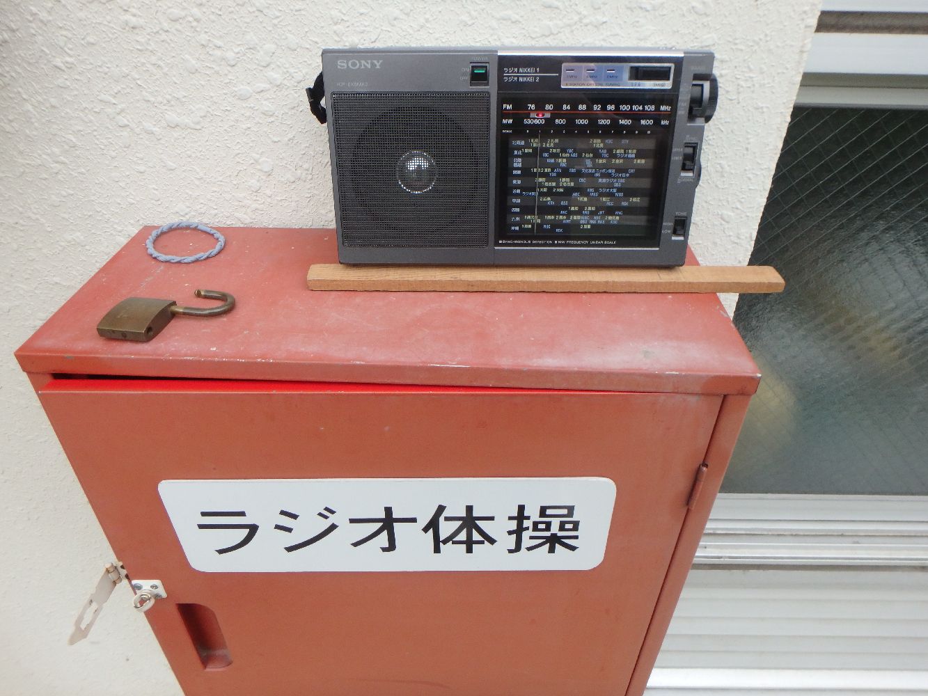 中庭に、NHKのラジオ体操の放送開始を告げる