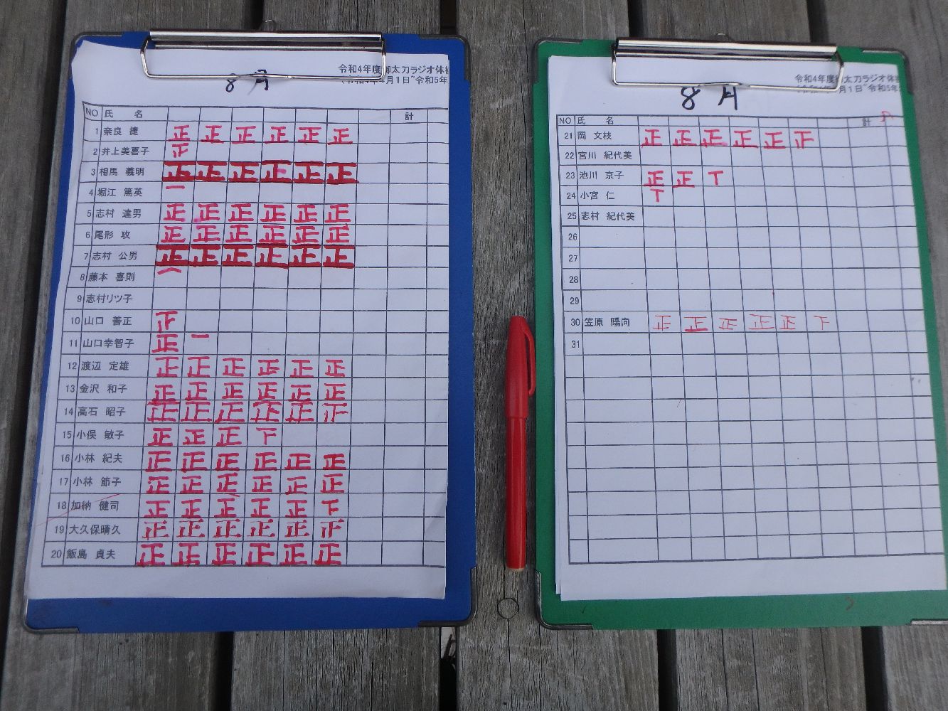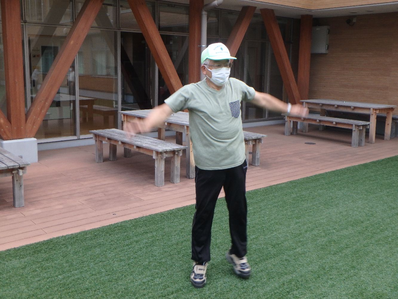 ラジオ体操第一、ラジオ体操第二と皆さん軽快に体を動かしています。