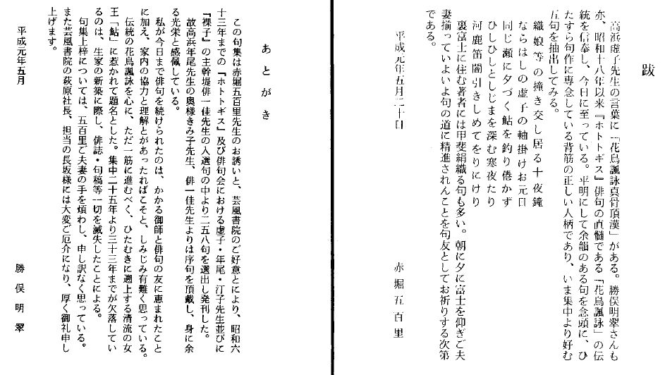 ◆赤堀五百里先生選に私の句集「あゆ」より四句選んでいただきました。