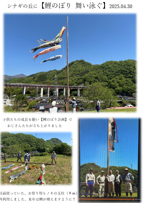 子供たちの健やかな成長を願い、下組のおじさん達が【鯉のぼり計画】で