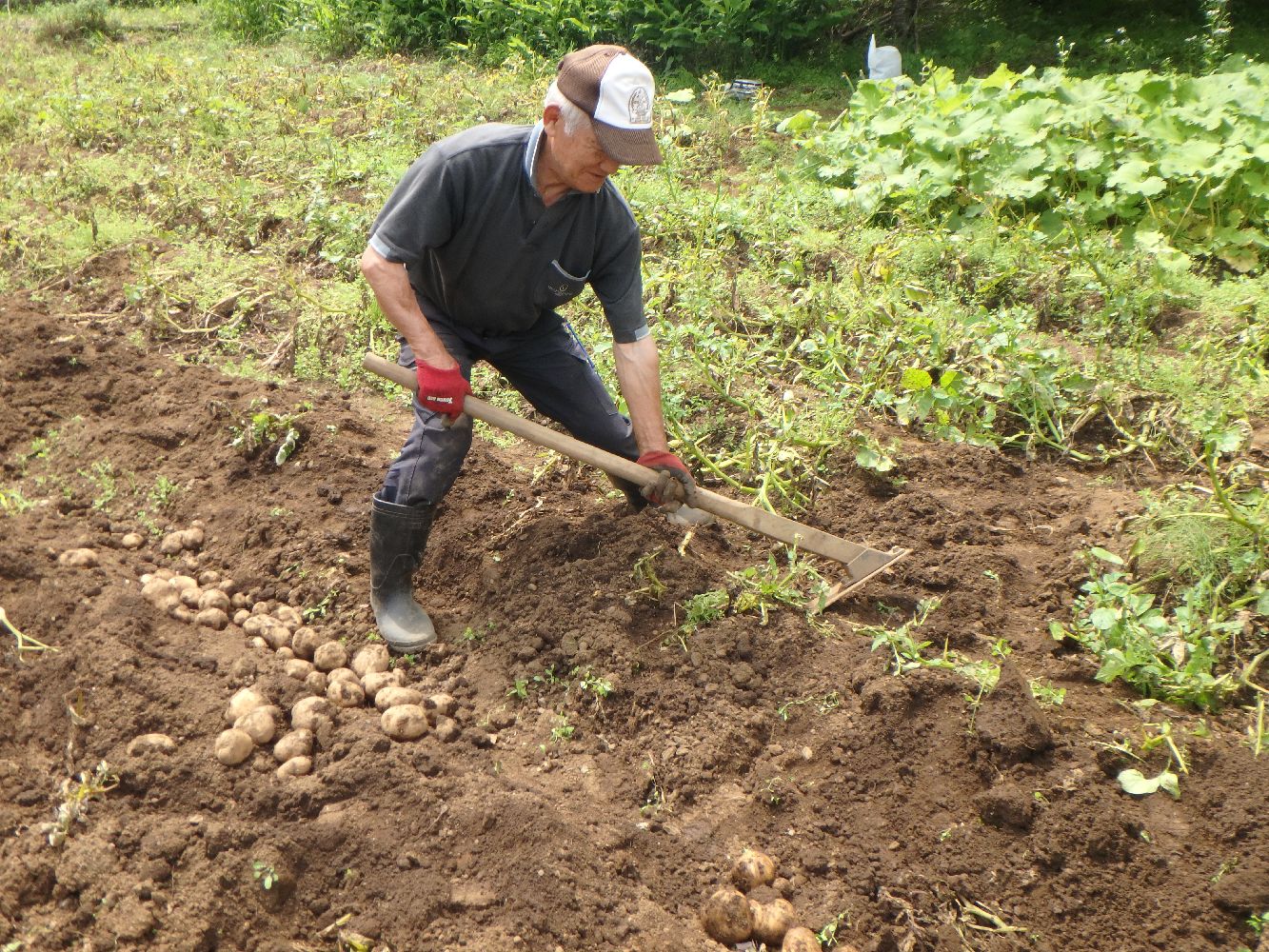 土を掘り起こすと、まあ美味しそうなじゃがいも!