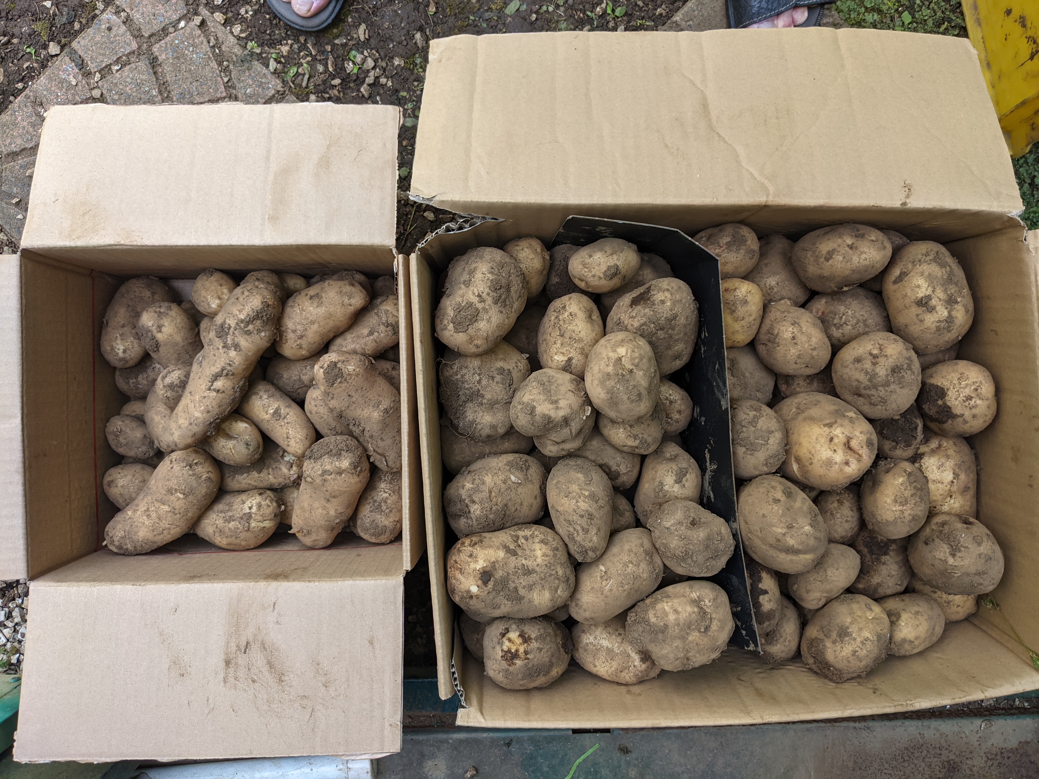 3月21日に植えたじゃがいもは、幹が順調に育ち、めでたく芋掘りとなりました。