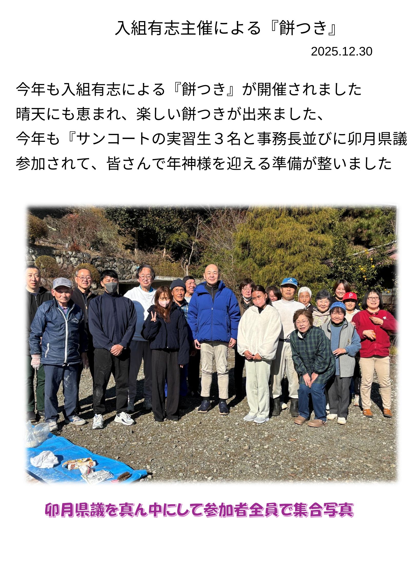 12月30日、冬とは思えないあたたかな日差しの中で餅つき。
