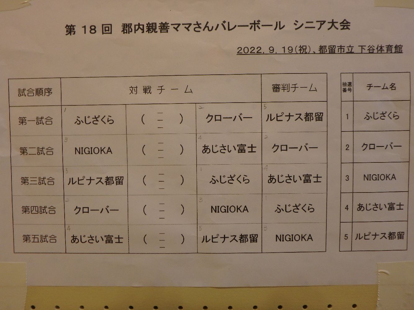 さて、9月のある祭日の月曜日、隣町都留の体育館で郡内親善シニア大会がありました。