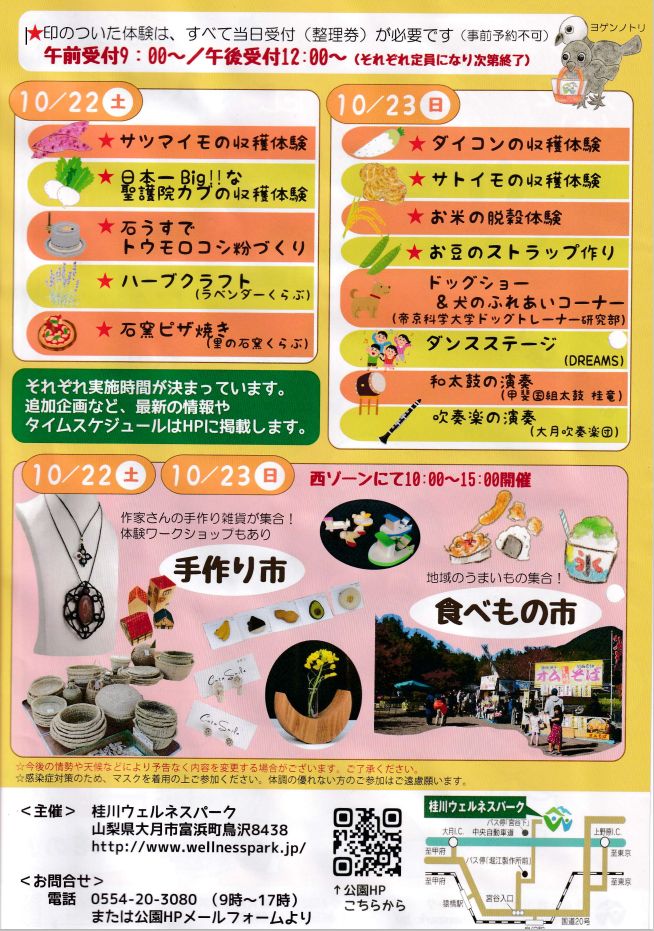 10月22日(土)〜23日(日)大月市主催の『ウェルネスさとやま収穫祭』が