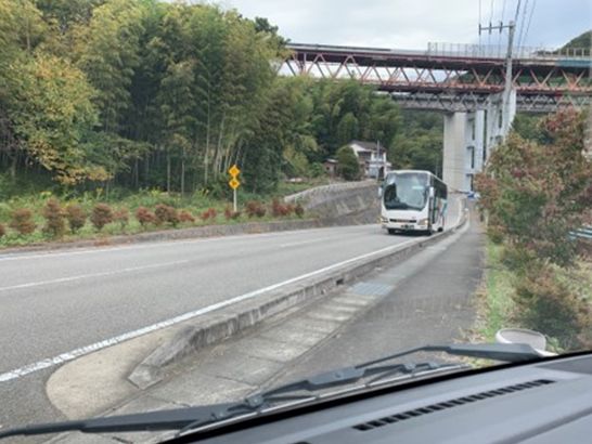 大型バスが新宿駅から11時30分に浅利に到着