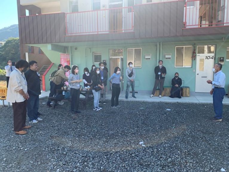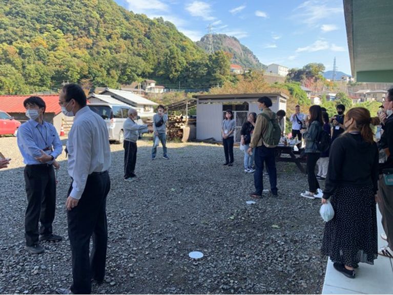 9時30分、モニターツアー参加者一行が東横インから徒歩で浅利マルチベースに到着。