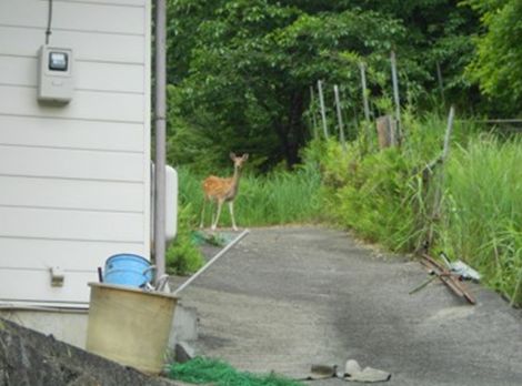 『秋葉様の祠』近くで鹿と遭遇
