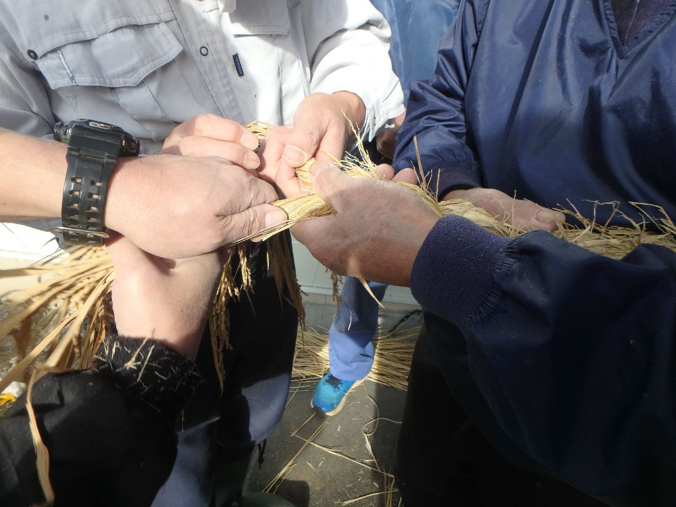 基本の縄づくりに新人生徒3名が挑戦いたしました。結果は写真をご覧ください。