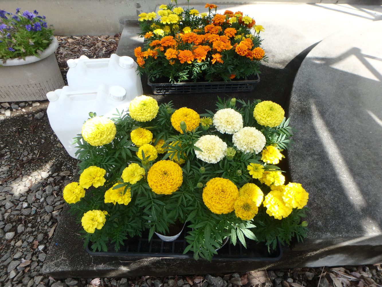 花壇の土を増して、新しくマリーゴールドを植えました。