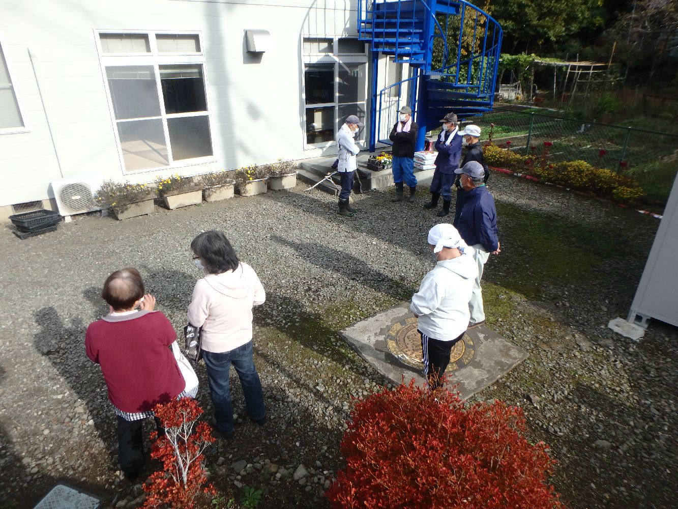 朝9時、爽やかな秋晴れの中、公民館関係者の方々にたくさん集まっていただきました。