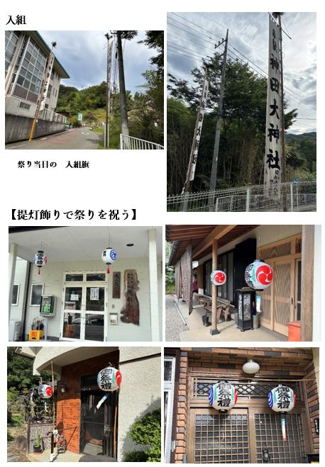 【三地区による旗上げと提灯飾り】