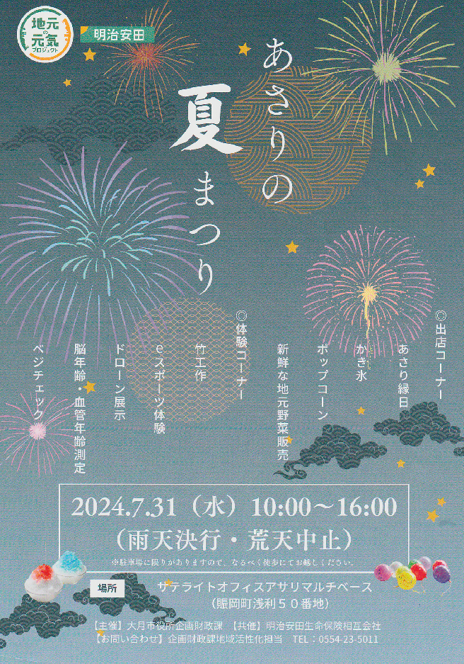 7月31日、浅利マルチベースで夏まつりが開催されました。