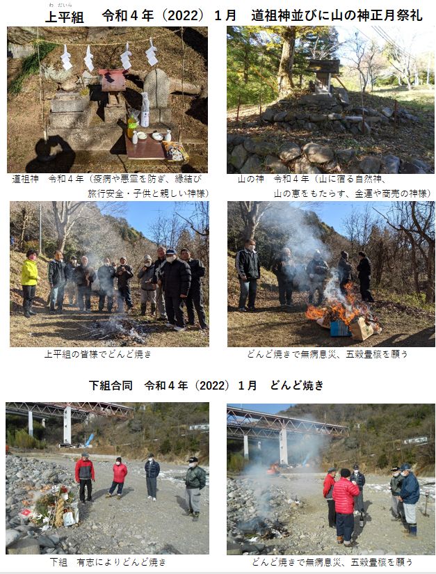 1月15日(日)上平組にて山の神参拝とどんど焼きが行われました。