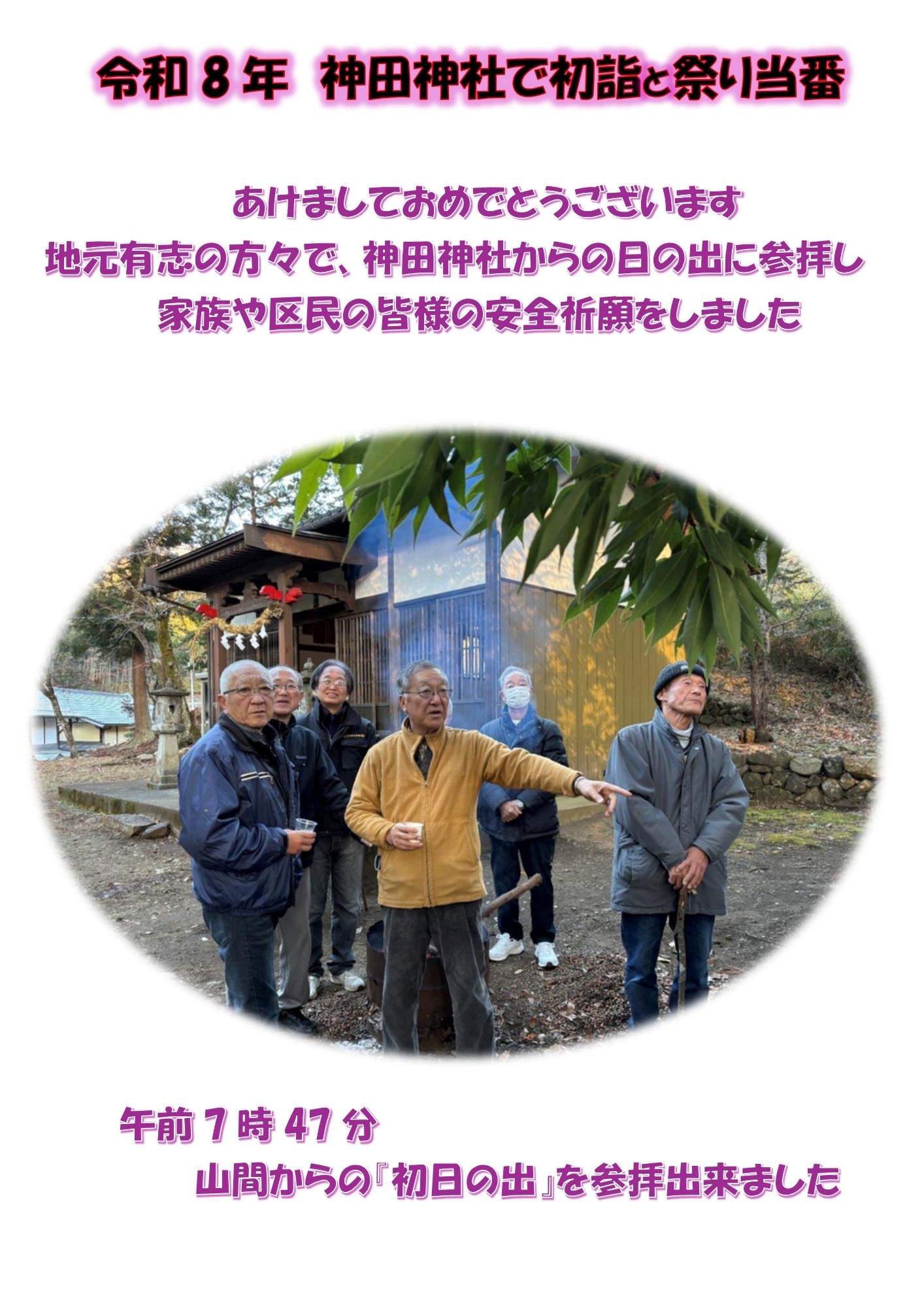 令和8年1月1日有志が集まって、神田神社で初詣 初日の出参拝を実施しました。