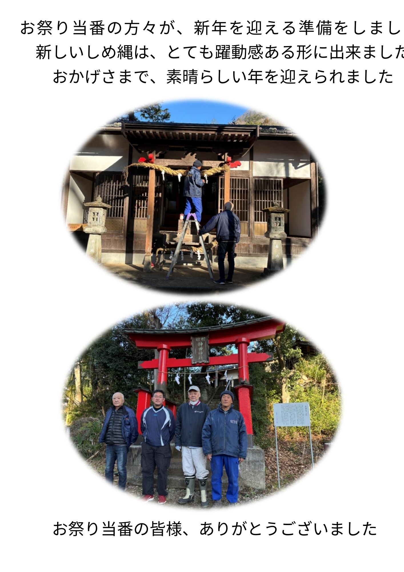 お正月前の12月30日、祭り世話で1年に1回のしめ縄掛け替えを行いました。