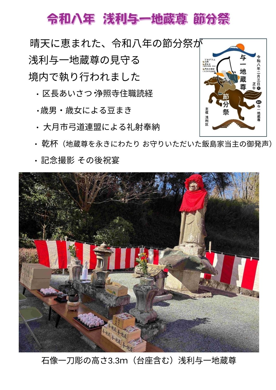 浅利与一の地蔵尊の前で節分祭が行われました。