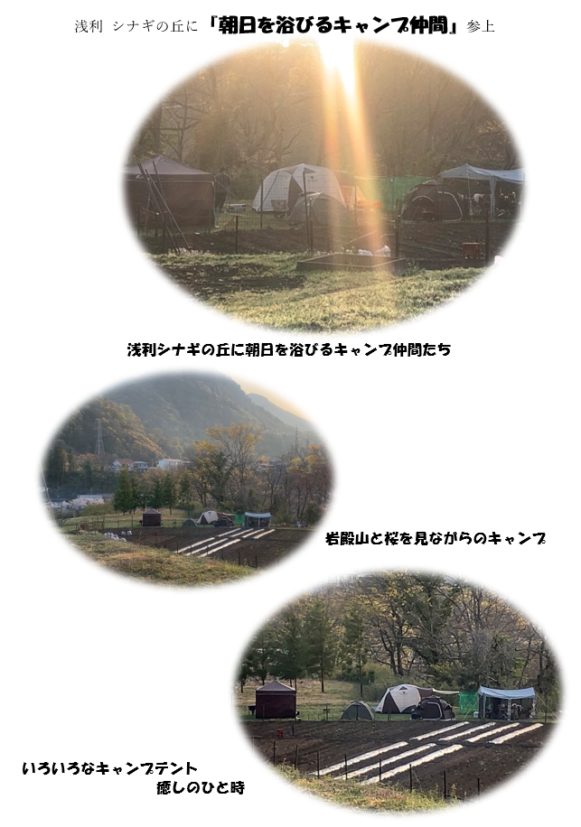 浅利シナギの丘に 『朝日を浴びるキャンプ仲間』 参上