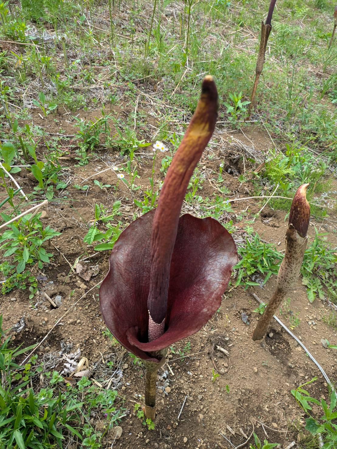 竹藪の中に、意図も不思議な形と色をした物体(キノコ?)を発見。