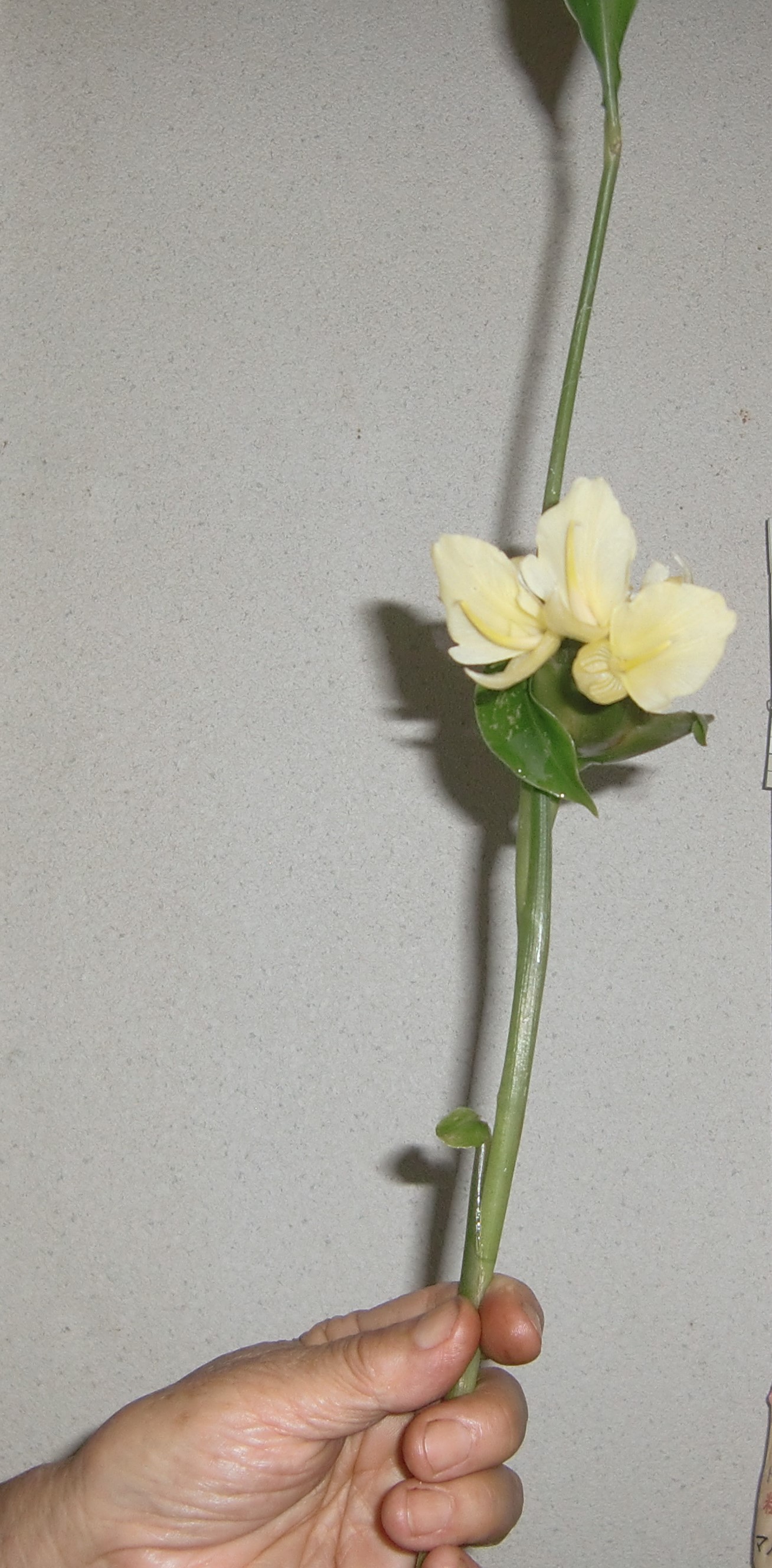大きな花をつけ、扇型の特徴的な葉をつける。