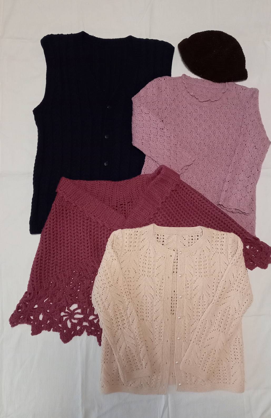 お恥ずかしいんですけど、かな書道、編み物、木目込人形、花栽培、野菜作りなどです